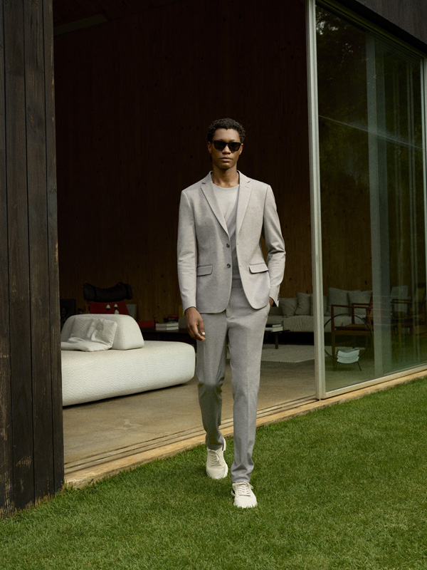 A alfaiataria aparece reinterpretada em versões contemporâneas, com peças que podem ser adquiridas e usadas de forma independente, como paletó e calça em malha tecnológica que, juntos, compõem um visual alinhado e versátil. O paletó mantém o visual refinado da alfaiataria clássica, enquanto a calça, confeccionada em poliamida com elastano, garante conforto, mobilidade e leveza no dia a dia. Os sets estão disponíveis nas cores preto, azul-marinho e cinza mescla, e reforçam a proposta de flexibilidade da coleção.